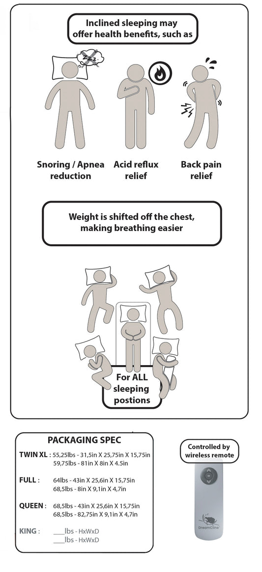 Discover the first and only adjustable bed engineered specifically for incline sleeping — the DreamCline™ Incline Frame. Designed to promote healthier sleep posture, improved breathing, and better circulation, DreamCline™ redefines what an adjustable bed can do.