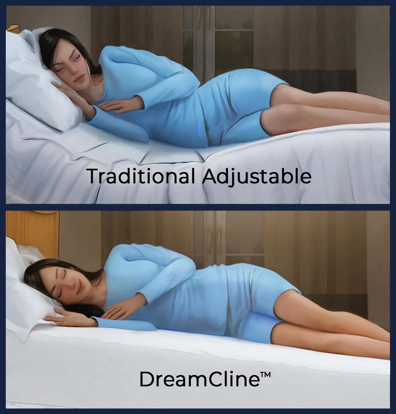 DreamCline™ is a true incline bed—not an adjustable base that bends you in half. Sleep naturally in any position with your spine properly aligned from head to toe.